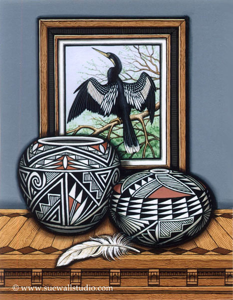"Anhinga Portrait & Pots"